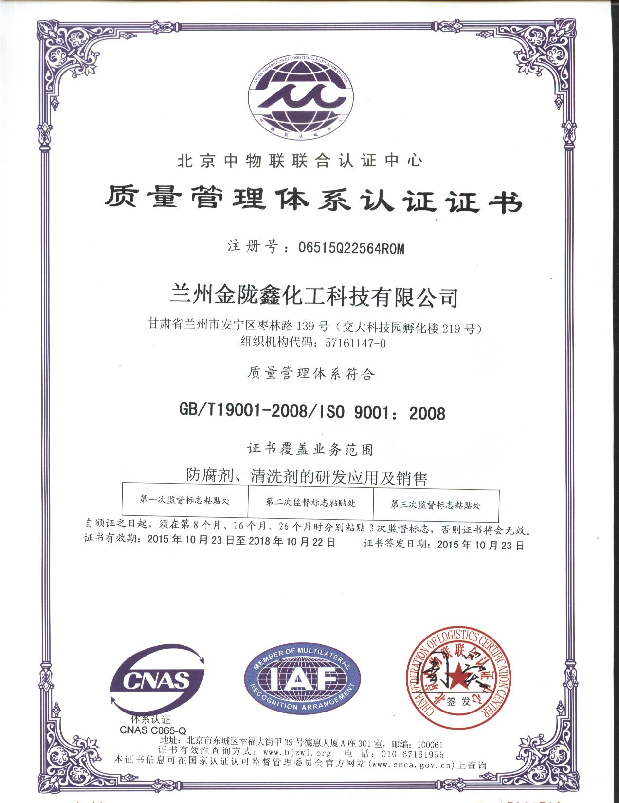 質量管理體系認證證書