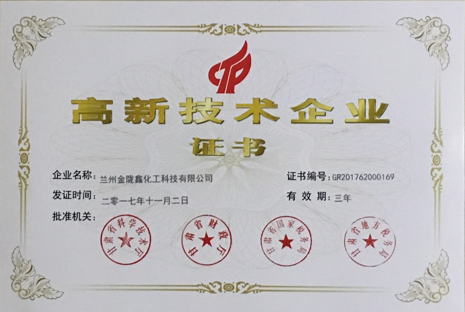 通過前期的準備和評審我公司通過了國家高新技術(shù)企業(yè)認定,并與今日正式拿到國家高新技術(shù)企業(yè)證書。